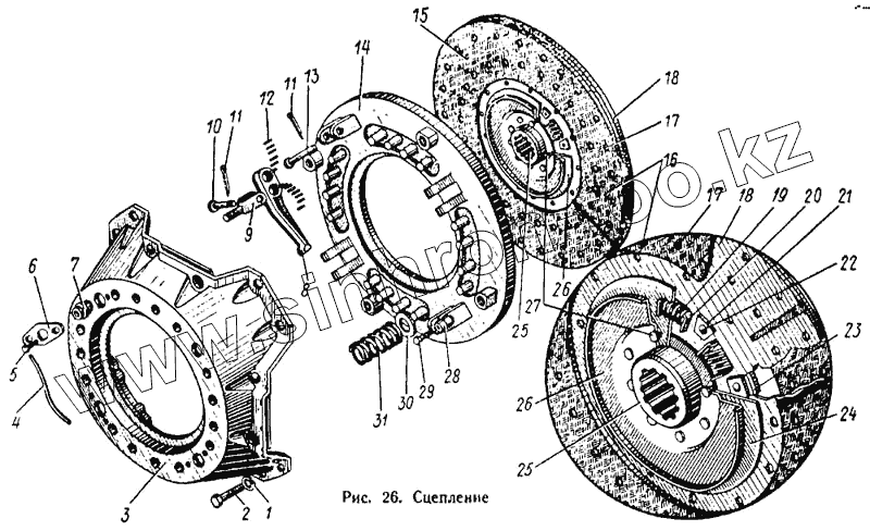 Каталог запасных частей к технике: ЛАЗ 695Н. Сцепление