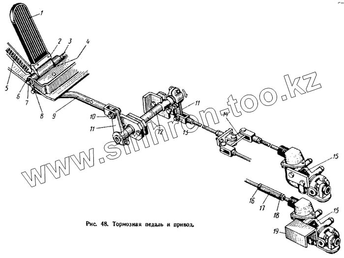 Каталог запасных частей к технике: ЛАЗ 695Н. Тормозная педаль и привод