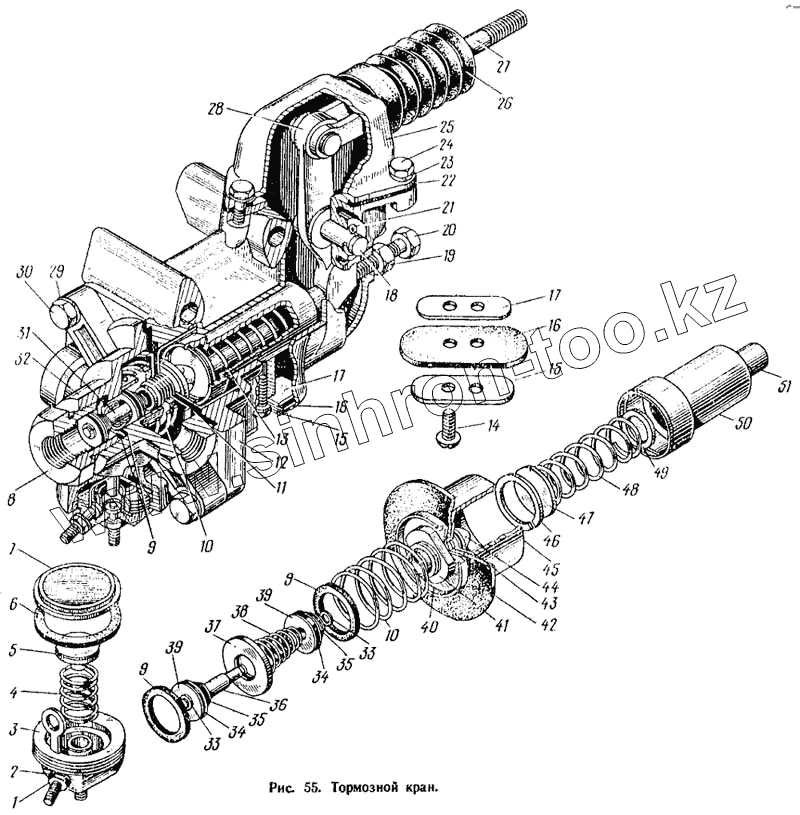 Каталог запасных частей к технике: ЛАЗ 695Н. Тормозной кран