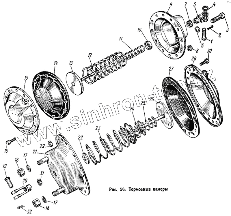 Каталог запасных частей к технике: ЛАЗ 695Н. Тормозные камеры