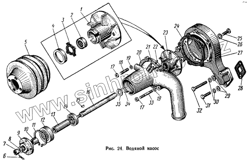 Каталог запасных частей к технике: ЛАЗ 695Н. Водяной насос