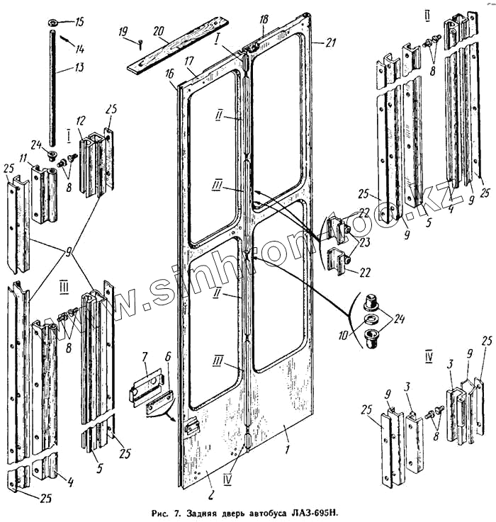 Каталог запасных частей к технике: ЛАЗ 695Н. Задняя дверь автобуса ЛАЗ-695Н