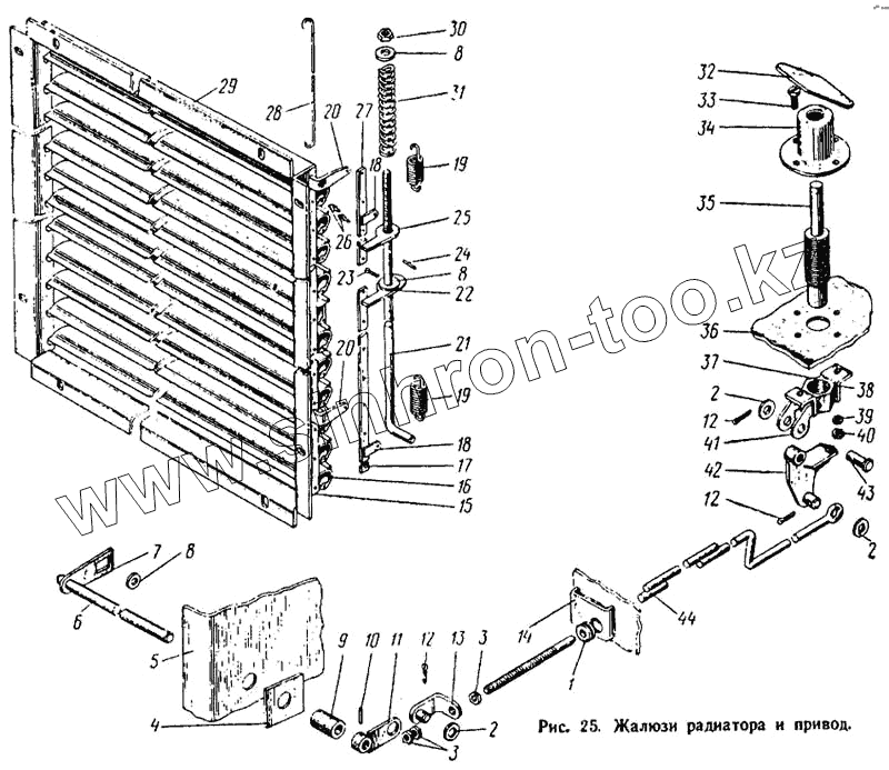 Каталог запасных частей к технике: ЛАЗ 695Н. Жалюзи радиатора и привод
