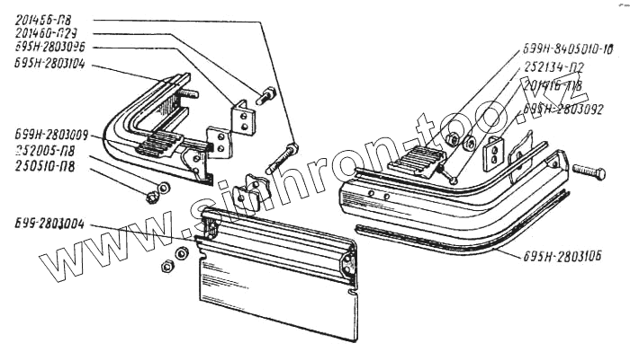 Каталог запасных частей к технике: ЛАЗ 699Р. Бампер передний и подножки