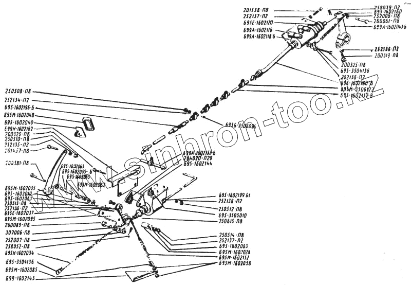Каталог запасных частей к технике: ЛАЗ 699Р. Механизм и привод управления сцеплением