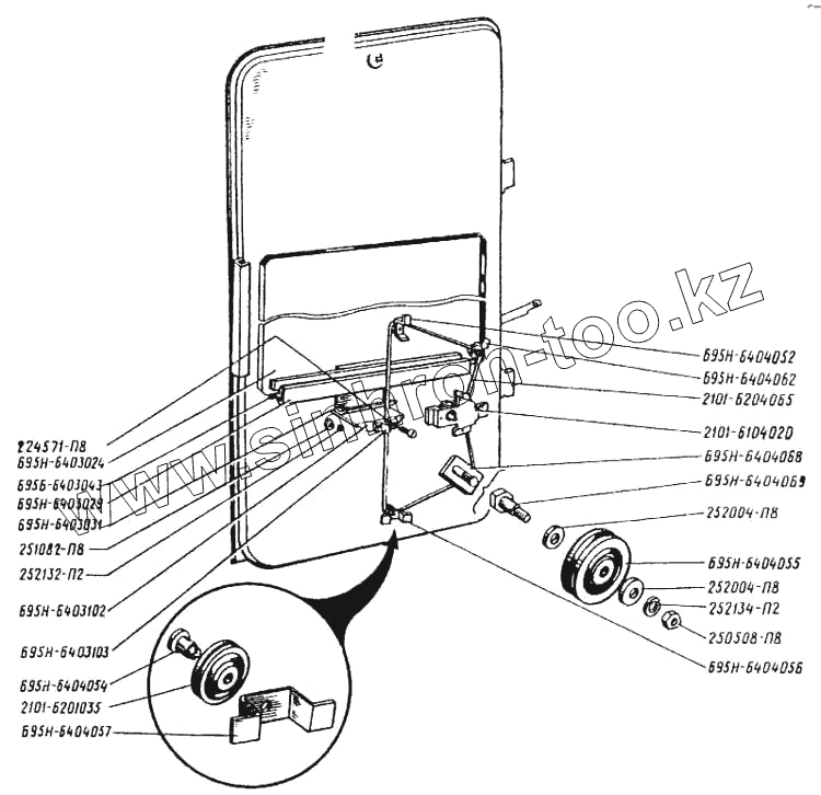 Каталог запасных частей к технике: ЛАЗ 699Р. Механизм перемещения стекла