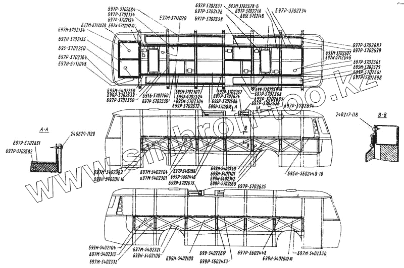 Каталог запасных частей к технике: ЛАЗ 699Р. Обивка кузова