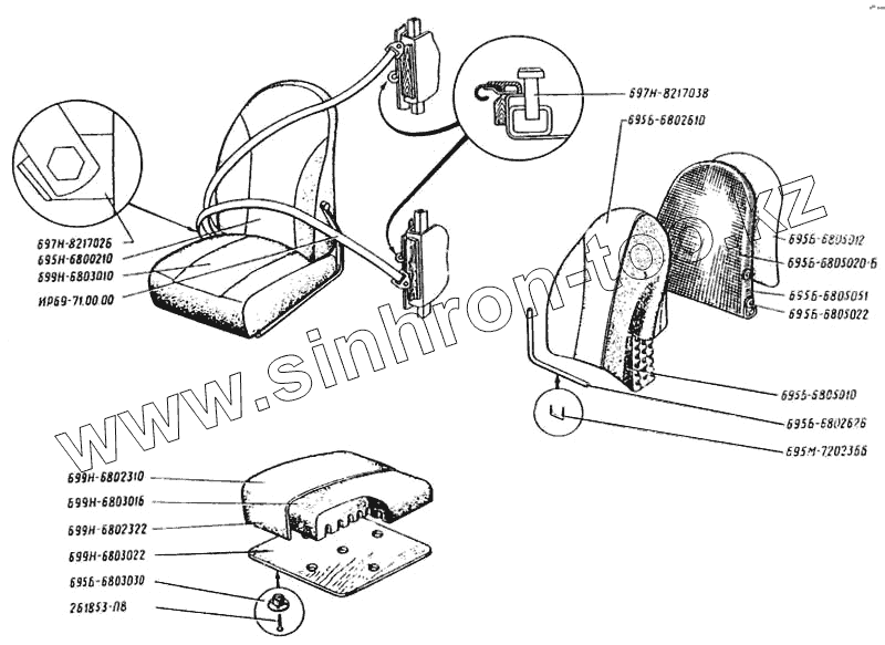 Каталог запасных частей к технике: ЛАЗ 699Р. Обивка сиденья водителя