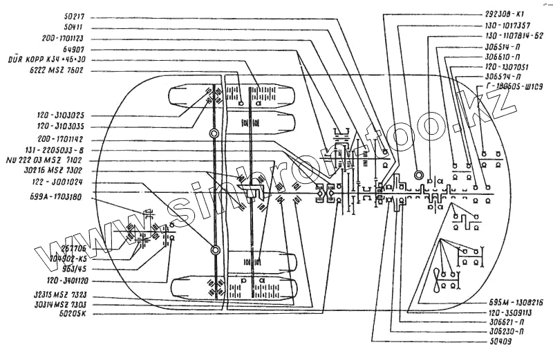 Каталог запасных частей к технике: ЛАЗ 699Р. Схема установки подшипников