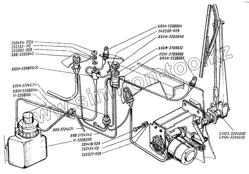 Каталог запасных частей к технике: ЛАЗ 699Р. Стеклоочиститель, омыватель и привод