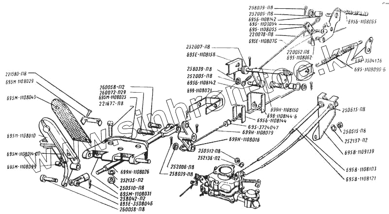 Каталог запасных частей к технике: ЛАЗ 699Р. Управление подачей топлива