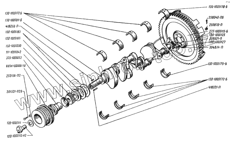Каталог запасных частей к технике: ЛАЗ 699Р. Вал коленчатый и маховик