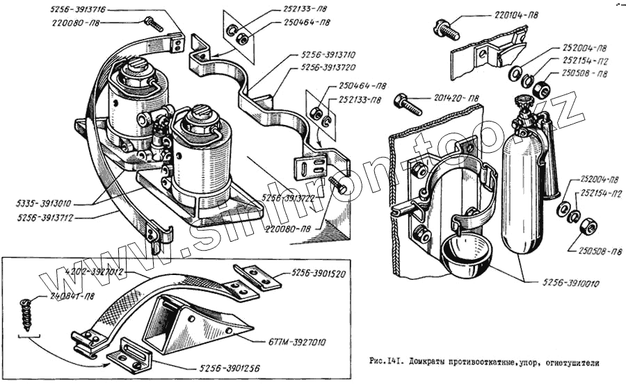 Каталог запасных частей к технике: ЛиАЗ 5256. Домкраты противооткатные, упор, огнетушители
