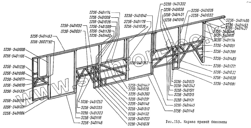 Каталог запасных частей к технике: ЛиАЗ 5256. Каркас правой боковины