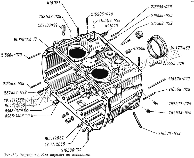 Каталог запасных частей к технике: ЛиАЗ 5256. Картер коробки передач со шпильками