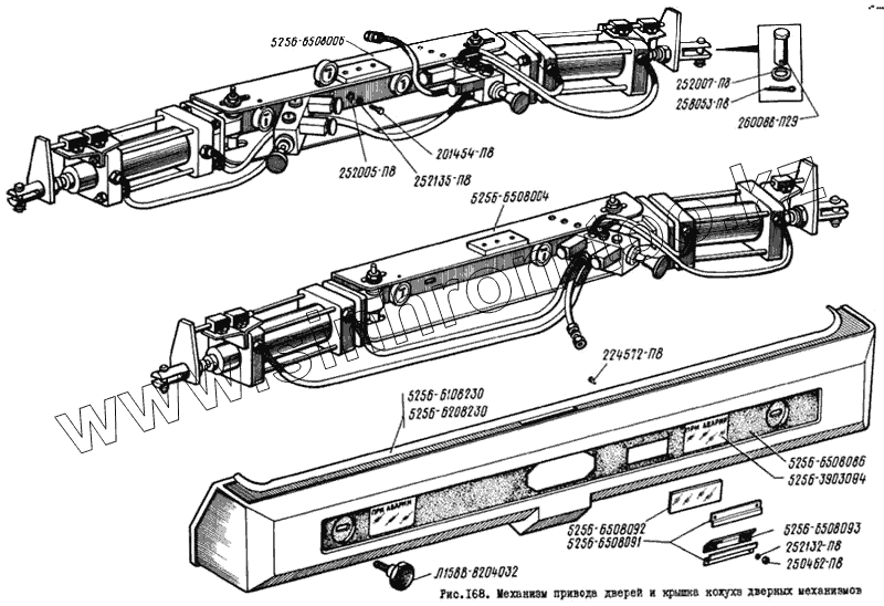 Каталог запасных частей к технике: ЛиАЗ 5256. Механизм привода дверей и крышка кожуха дверных механизмов