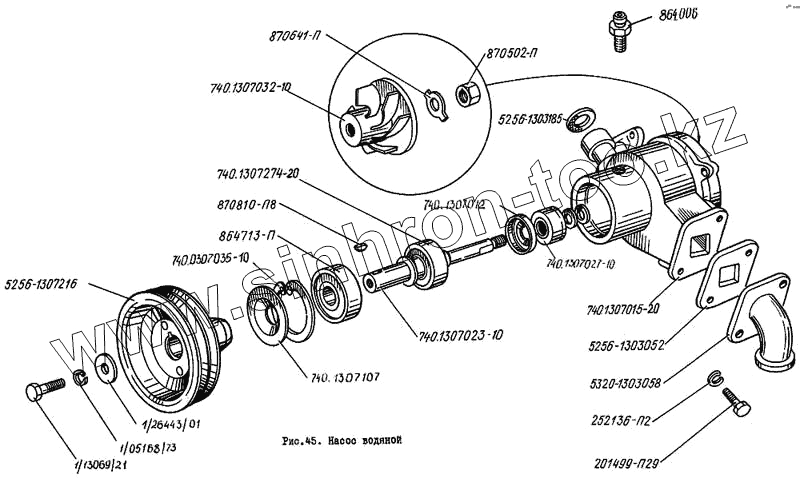 Каталог запасных частей к технике: ЛиАЗ 5256. Насос водяной