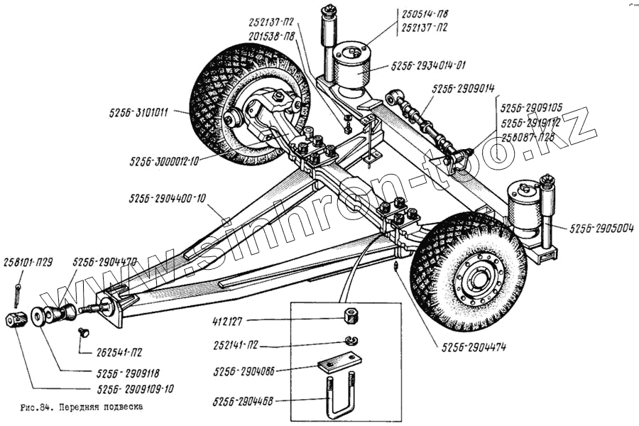 Каталог запасных частей к технике: ЛиАЗ 5256. Передняя подвеска