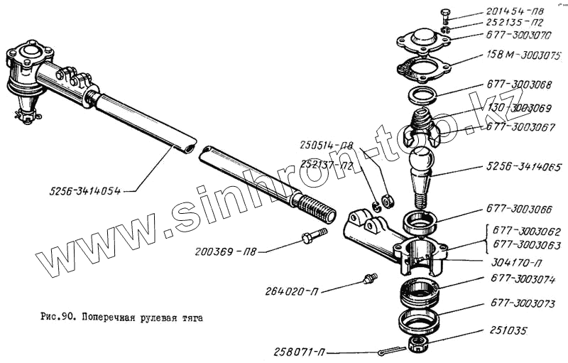 Каталог запасных частей к технике: ЛиАЗ 5256. Поперечная рулевая тяга