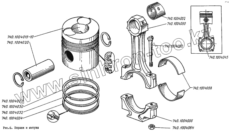 Каталог запасных частей к технике: ЛиАЗ 5256. Поршни и шатуны