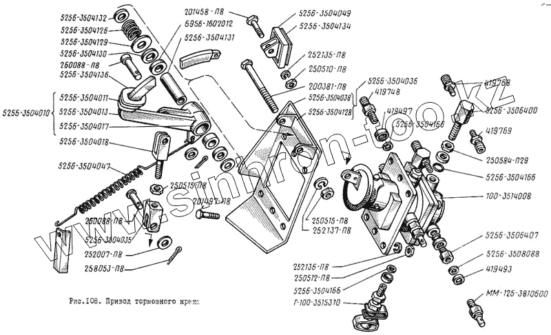 Каталог запасных частей к технике: ЛиАЗ 5256. Привод тормозного крана