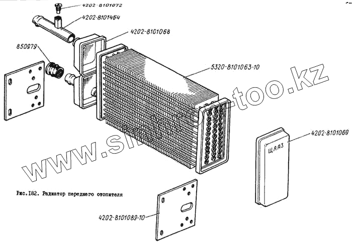 Каталог запасных частей к технике: ЛиАЗ 5256. Радиатор переднего отопителя