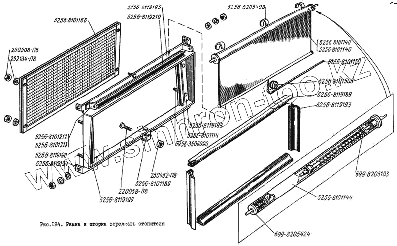 Каталог запасных частей к технике: ЛиАЗ 5256. Рамка и шторка переднего отопителя