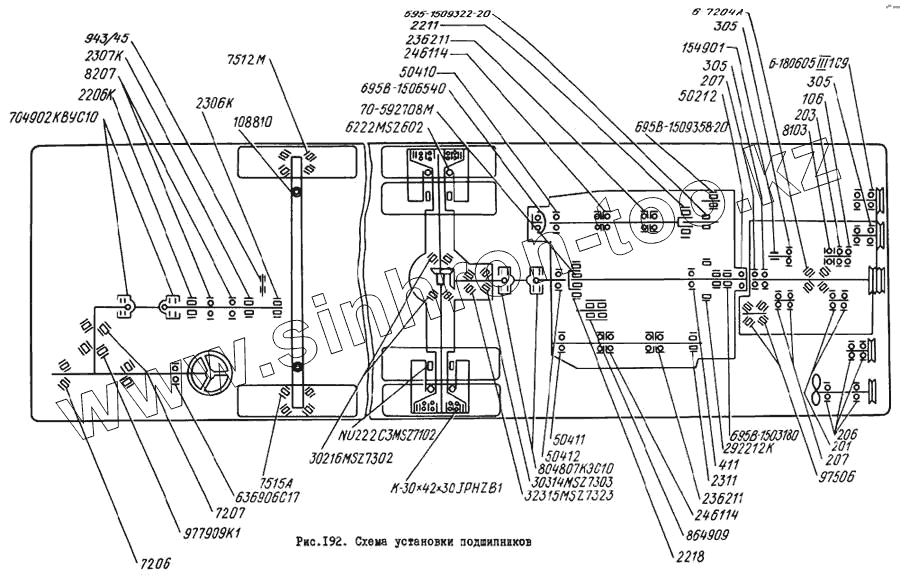 Каталог запасных частей к технике: ЛиАЗ 5256. Схема установки подшипников