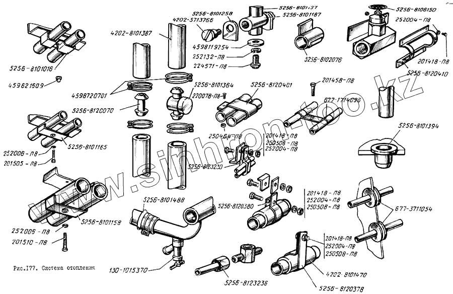 Каталог запасных частей к технике: ЛиАЗ 5256. Система отопления