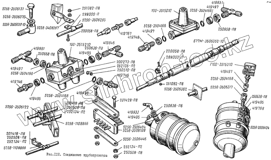 Каталог запасных частей к технике: ЛиАЗ 5256. Соединение трубопроводов