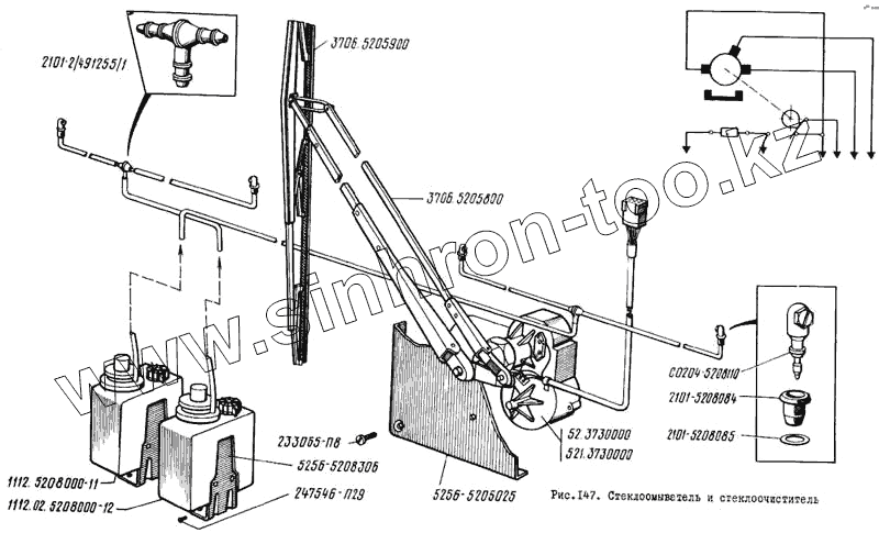 Каталог запасных частей к технике: ЛиАЗ 5256. Стеклоомыватель и стеклоочиститель