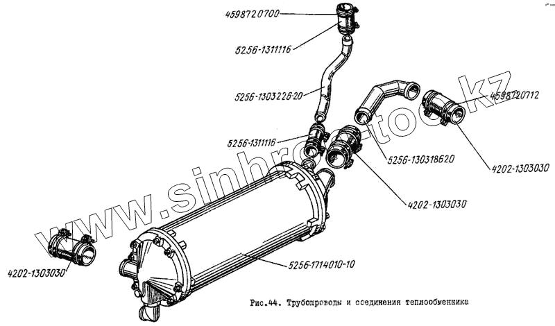 Каталог запасных частей к технике: ЛиАЗ 5256. Трубопроводы и соединения теплообменника