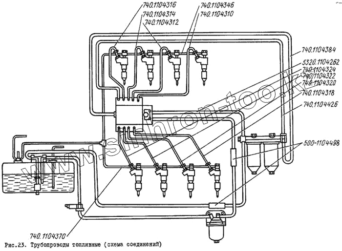 Каталог запасных частей к технике: ЛиАЗ 5256. Трубопроводы топливные (схема соединений)