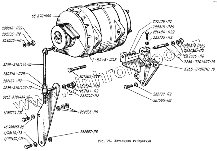 Каталог запасных частей к технике: ЛиАЗ 5256. Установка генератора