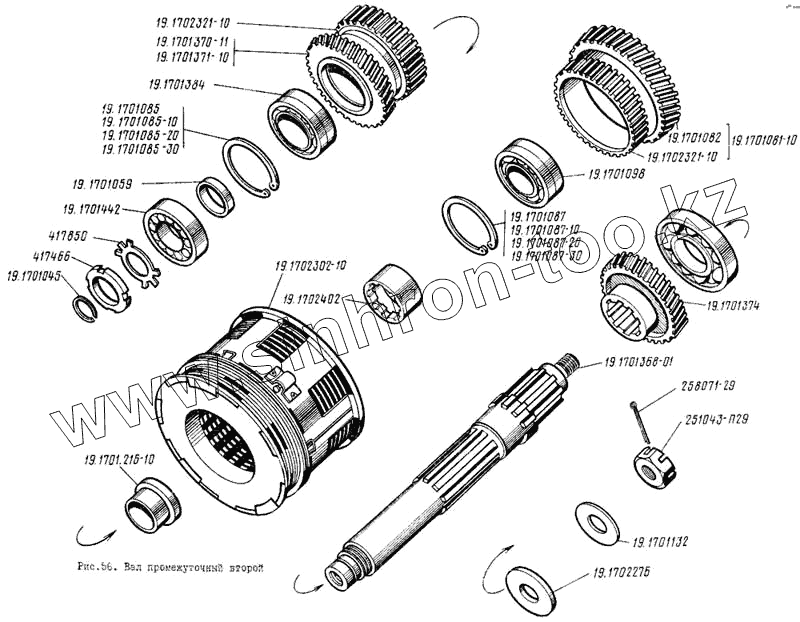 Каталог запасных частей к технике: ЛиАЗ 5256. Вал промежуточный второй
