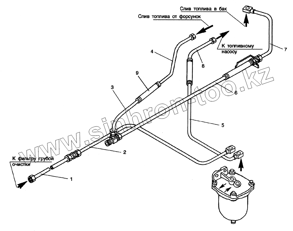Каталог запасных частей к технике: ЛиАЗ-5256, 6212 (2006). Система питания двигателя ЯМЗ-236НЕ топливом