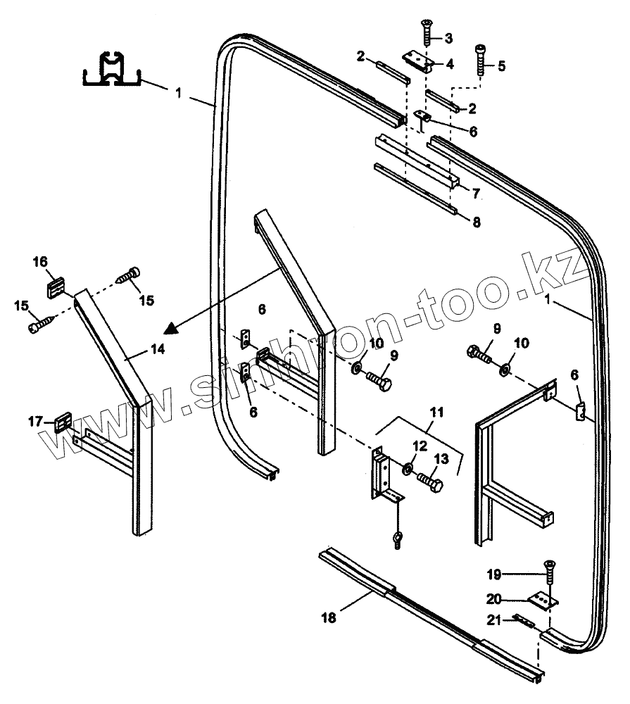 Каркас, облицовка и обивка левой боковины ЛиАЗ-6212