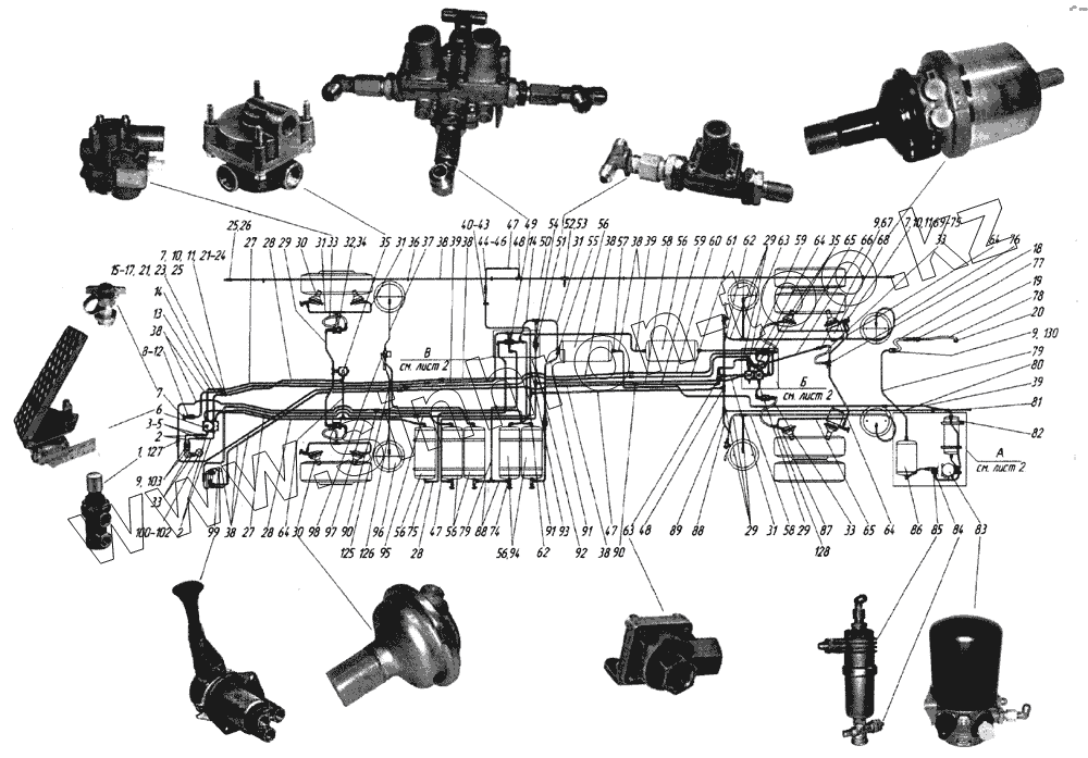 Каталог запасных частей к технике: ЛиАЗ-5256, 6212 (2006). Установка пневмосистемы (I)
