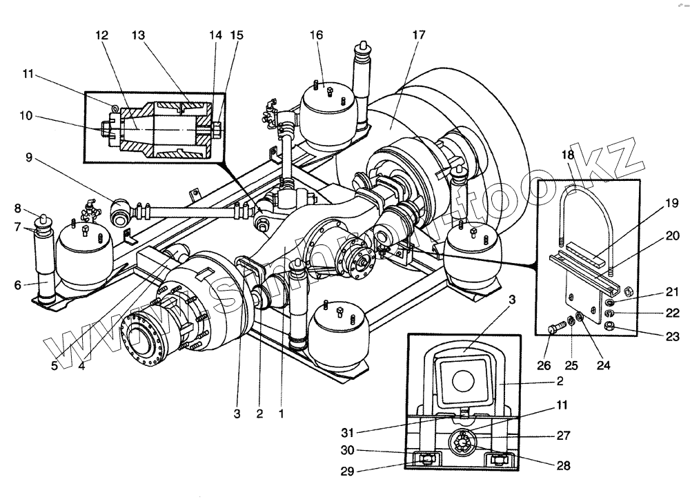 Каталог запасных частей к технике: ЛиАЗ-5256, 6212 (2006). Установка задней подвески