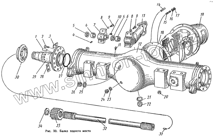 Каталог запасных частей к технике: ЛиАЗ 677. Балка заднего моста