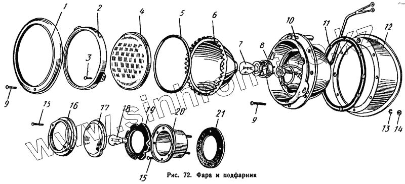 Каталог запасных частей к технике: ЛиАЗ 677. Фара и подфарник