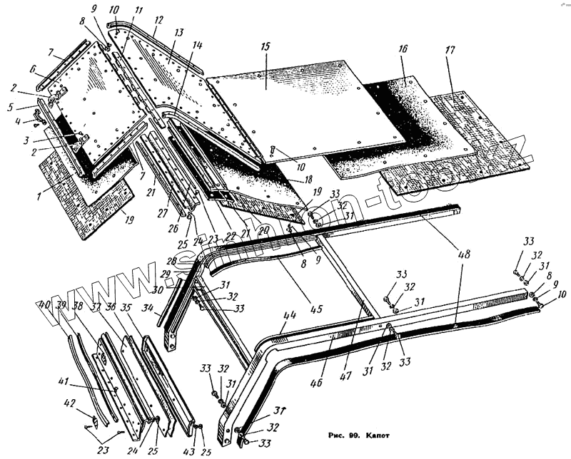 Каталог запасных частей к технике: ЛиАЗ 677. Капот