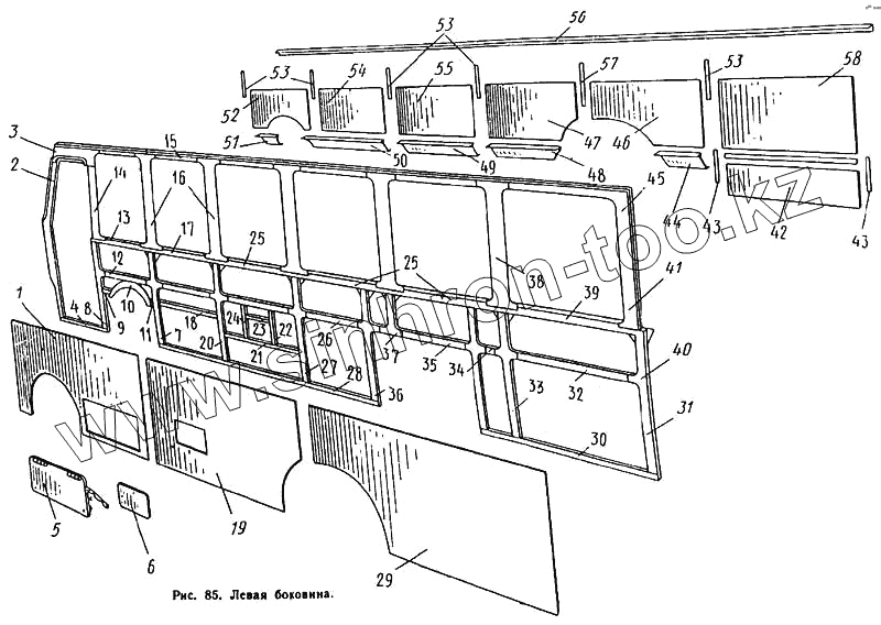 Каталог запасных частей к технике: ЛиАЗ 677. Левая боковина