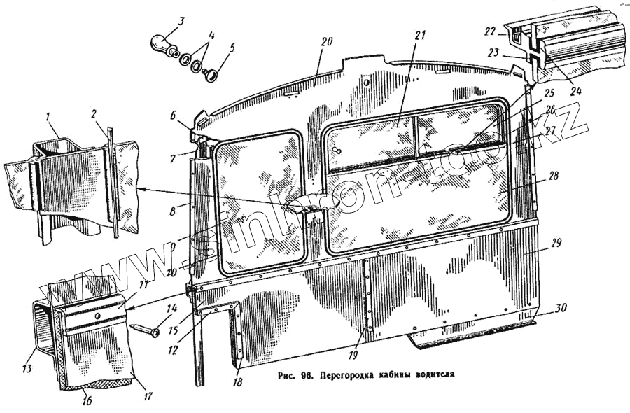 Каталог запасных частей к технике: ЛиАЗ 677. Перегородка кабины водителя