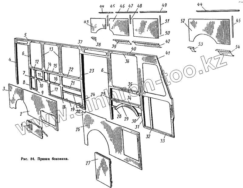 Каталог запасных частей к технике: ЛиАЗ 677. Правая боковина