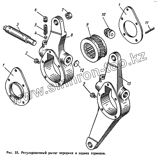 Каталог запасных частей к технике: ЛиАЗ 677. Регулировочный рычаг передних и задних тормозов