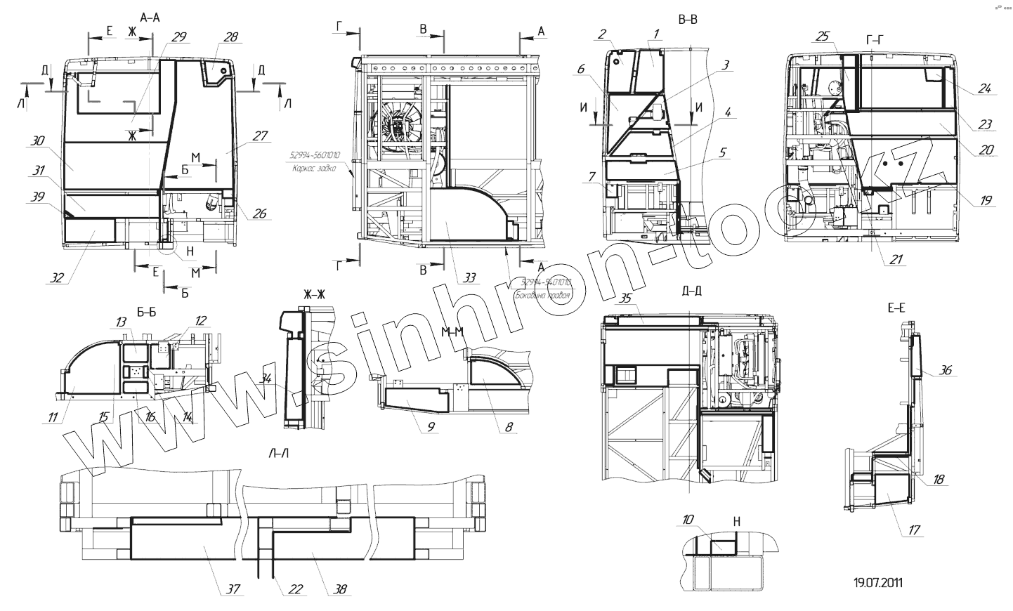 Каталог запасных частей к технике: Нефтекамский автозавод 52994-40-42 (надстройка). 52994-5601710 – Установка панелей мотоотсека