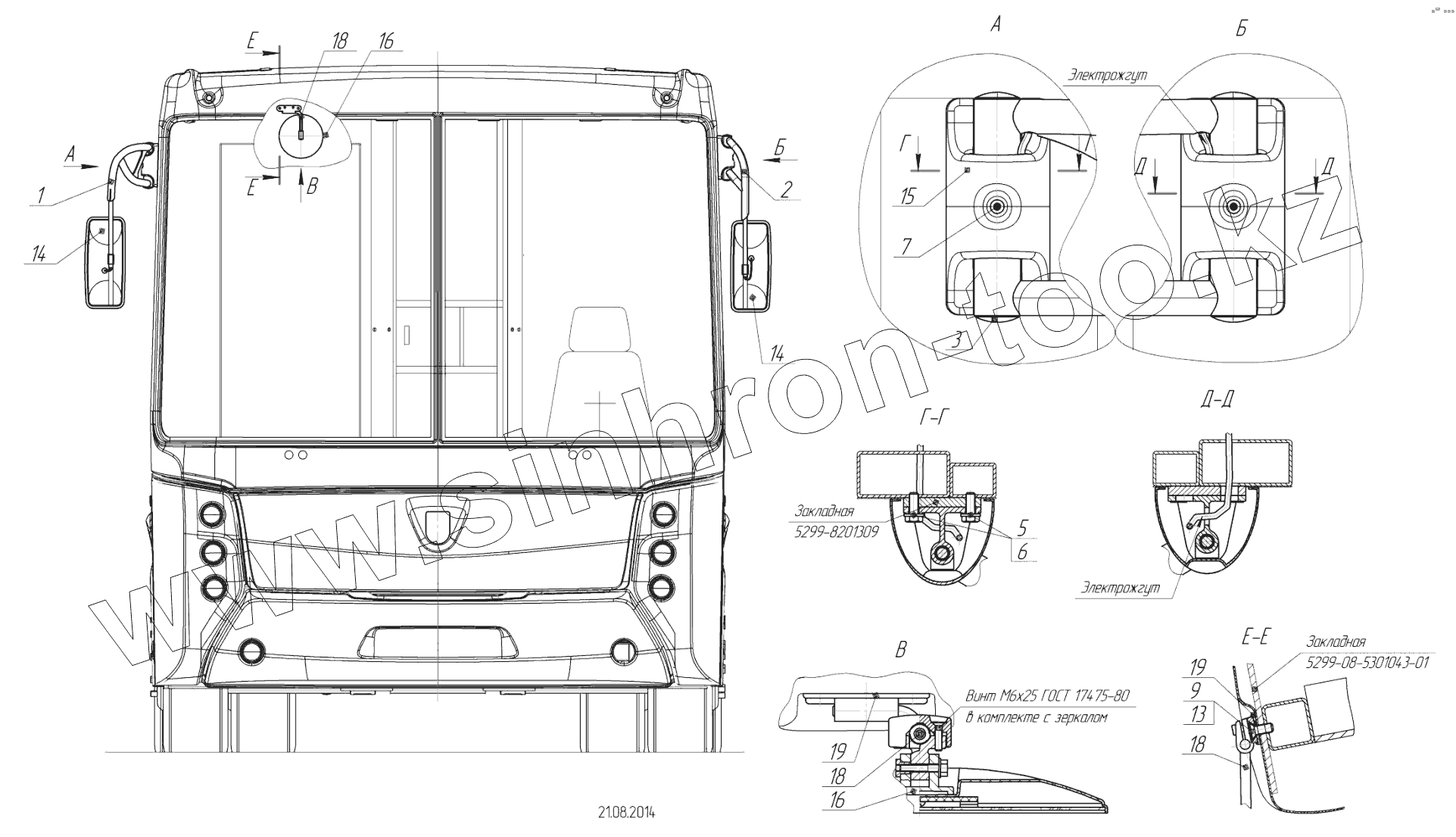 Каталог запасных частей к технике: Нефтекамский автозавод 52994-40-42 (надстройка). 5299-102-8200100 – Установка зеркал
