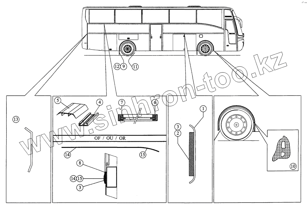Каталог запасных частей к технике: Нефтекамский автозавод 52999 (надстройка). Боковые части кузова