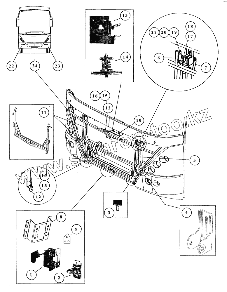 Каталог запасных частей к технике: Нефтекамский автозавод 52999 (надстройка). Детали фронтальной панели люка